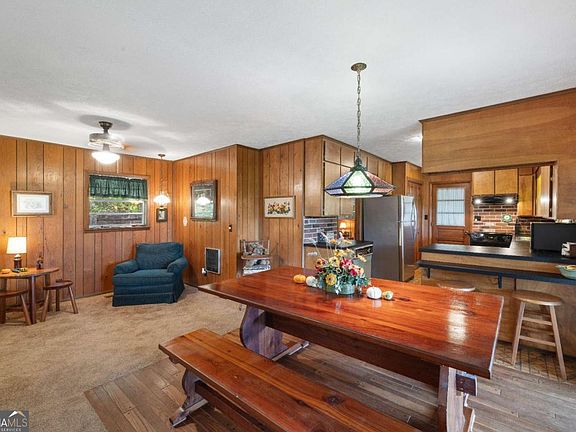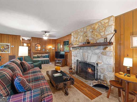 LOCATION-LOCATION-LOCATION! Nestled in one of the most desirable locations in all of Fannin County, this timeless 3-bedroom, 1 1/2 bath cabin offers a quintessential retreat for nature lovers and savvy investors alike. Perched above Aska Road with seasonal views of the Toccoa River, this property boasts a rare blend of privacy and accessibility. It is located within minutes of both downtown Blue Ridge and a plethora of hiking trails and drop in locations on the Toccoa River. Step back in time with its original 1970's design, lovingly maintained by the original owners since first constructed. Exterior has live edge siding with a metal roof for easy maintenance. Living room features a wood-burning rocked fireplace and open floor concept with two sets of sliding glass doors to access the back deck. Enjoy morning coffee or evening drinks on the expansive covered deck, which stretches the entire length of the cabin, providing the perfect space for outdoor gatherings and relaxation. The cabin's gated driveway leads you to a private lot, ensuring peace and tranquility. Beyond the cabin there is a cleared area for a fire pit. With endless possibilities to enhance or preserve its original charm, this cabin is a blank canvas for your vision of a weekend escape, a rental investment, or a project to personalize. Property is being sold fully furnished. 283 River Bend Lane offers a unique opportunity to own a piece of Fannin County's most coveted landscape. Don't miss your chance to make this serene haven your own!