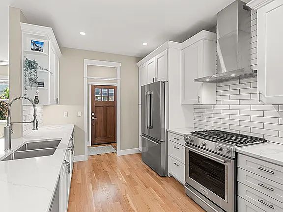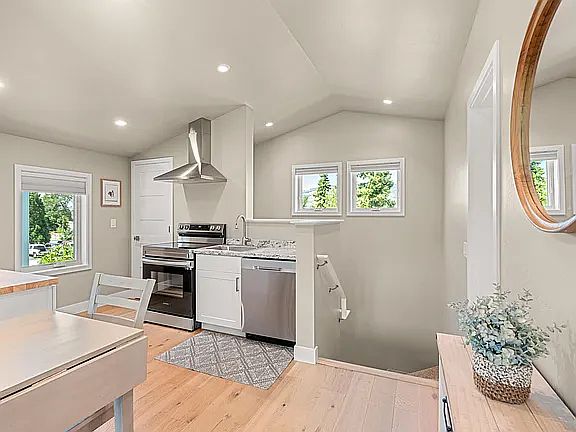 Private backyardBeautiful mountain viewsWalk-in closetGas range with hoodWhite oak hardwoodsVaulted ceilingsPrimary suite