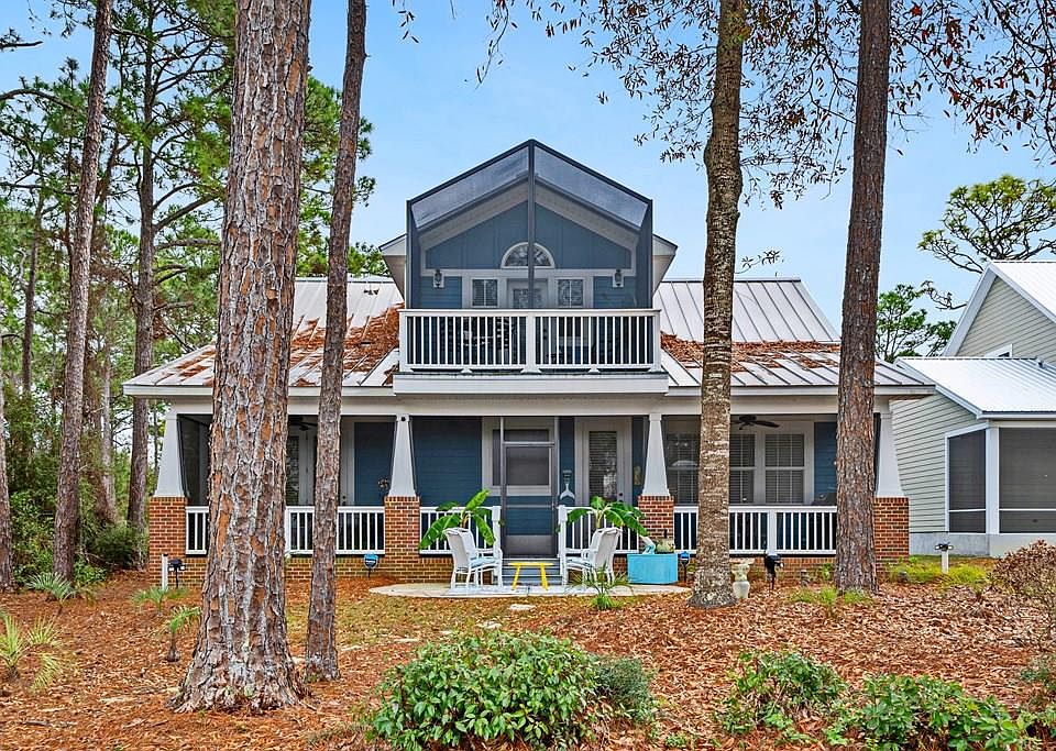 Beautiful Craftsman style custom designed and built home, located in the award-winning St. James Bay Golf & Pickleball Resort Community. This home offers an outdoor paradise with stunning views of the 14th green from both the large screened in back porch and the upstairs screen enclosed balcony. Features of this home include a welcoming covered screened front porch for entertaining guests and a downstairs master suite with dual sinks and granite countertops with a large walk in closet. Immaculate interior with crown molding, coffered ceilings, tile and cherry wood floors throughout living areas. Upstairs flex room for work at home office, craft space, or fourth bedroom. Stainless steel appliances complement the custom kitchen island and granite countertops. The finished attic is perfect for tons of additional storage. Recent updates include: HVAC(2025), stainless steel refrigerator(2024), exterior home painted(2023), second floor screened balcony(2024), professionally painted kitchen cabinetry & new stone backsplash(2023), custom screened front porch blinds(2024). You'll also enjoy private bay access to Bayfront Park owned by the POA with pavilions and dock, only 1/4 mile from your new home, and a stunning community beach with full amenities only a short 15 minute drive away. You will also have full use of a fenced in storage area owned by the POA, for all your recreational toys. St James Bay offers full and social memberships to the club amenities, including, golf course, community pool, pickleball courts, fitness center, etc. This is truly coastal living at its finest. Call today for your private tour.