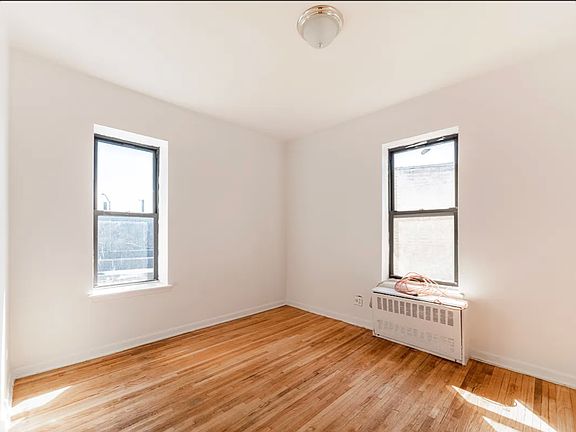 The apartment features a nice living area, hardwood floors, a full separate kitchen with modern appliances, 1 queen-size bedroom with a closet, and a twin-size bedroom with a closet.