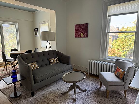 Great one bedroom unit in Burlington's The Lindsay House built in 1896. Landlord willing to do 4-6- month lease & available now through April 1st. The unit comes furnished and the landlord pays heat, electric, water & sewer, and trash & recycling. Tenant pays wifi/cable. One off street parking spot plus on street parking. Free washer & dryer usage in the building. 1st floor unit with lake views, filled with charm, plus 2 balconies - a Juliet balcony & a back balcony with the lake views.