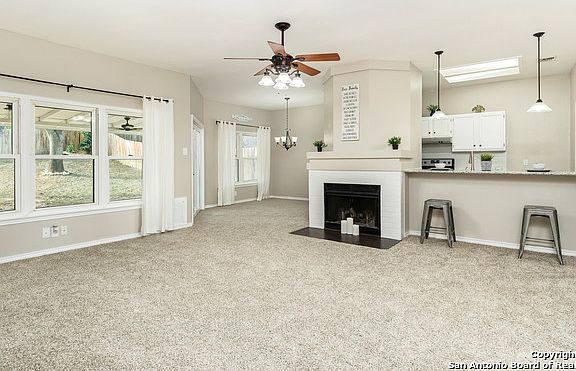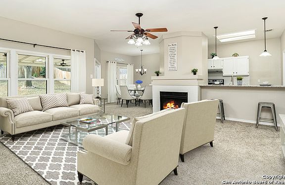 This beautiful remodeled one story home offers an open layout, fireplace, huge patio for entertaining and a workshop with electricity! Brand new features include: HVAC system, paint, granite & bath vanities, flooring, toilets, paint & much more! Roof & windows approx 5 years old. Northside ISD schools! Workshop is 14x11 and the patio measures 24x15