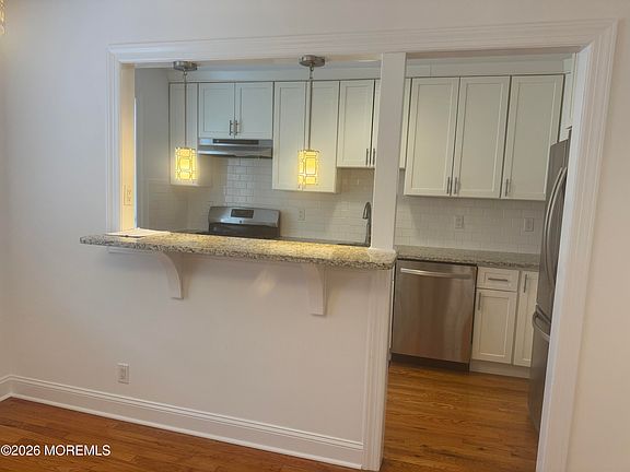 Experience the best of Red Bank living in this beautifully renovated, first-floor 2-bedroom, 1-bath condo. The open-concept layout offers hardwood floors and recessed lighting throughout. The chef's kitchen features a granite island, premium appliances, and elevated cabinetry perfect for entertaining. Both bedrooms offer generous closet space, and the modern bathroom includes a stylish tile shower. Enjoy abundant natural light and modern finishes in every room.