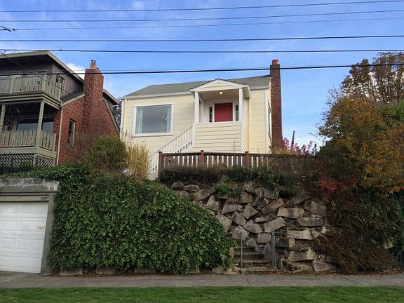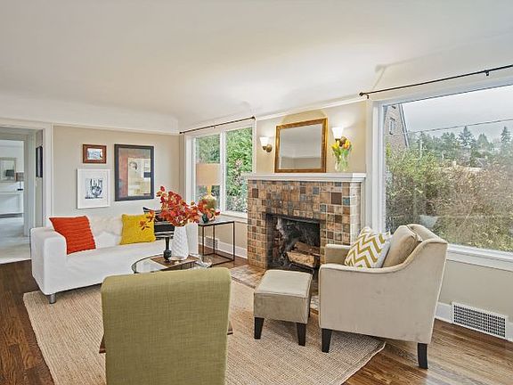 1927 Bungalow perched for wonderful natural light w/Western views of Sound, Elliott Bay & Olympic mtns . Glistening stained hdwd flrs, spacious liv/Din rms, Batchelder tiled fp to enjoy all season, charming arched doorways, coved ceilings & beautiful built-in cabinets. Circ flr plan ideal for entertaining. Kitch boasts Cherry cabinets/butcher block counters. High ceilings below for ideal rec rm/guest suite or add flr above. Attach gar, new windows/paint, sweet gardens. Hurry – this won’t last! Neighborhood Description Coe Elementary