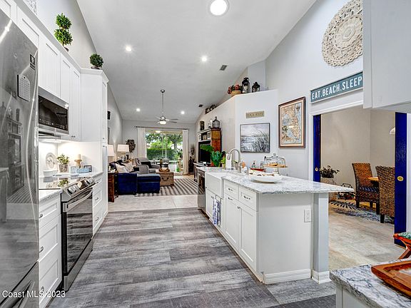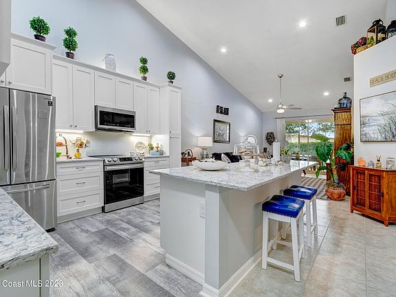 MUST SEE- RENOVATED & MOVE IN READY!! Stunning ONE-STORY villa features 2 bedrooms, 2 bathrooms, 1-car Garage and a FLEX space that can be used as a 3rd bedroom, office, or formal dining room. FULLY Updated kitchen, quartz counter tops, new cabinets, appliances & more. Tile floors throughout the home & Vinyl plank in bedrooms. Primary bedroom with walk in closet, double vanity & walk in shower. Laundry room off kitchen. Screened lanai with tile floors. Water Heater 2023. A/C approx. 5 years old. Located in Viera's PREMIER 55+ Community. Gated entrance & Resort Style Club House. Close to shopping, restaurants, beaches, and golf nearby. Clubhouse has a restaurant, bar, huge resort style pool, whirlpool, dance hall, art classes, etc. Schedule your showing today!