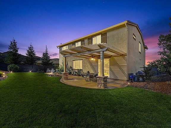 This beautiful energy efficient Meritage home features a fabulous floor plan, 5 bedrooms, 4 1/2 baths with a full downstairs bedroom with en-suite bathroom. The upstairs master bedroom and spacious master bathroom won't disappoint where you can relax in the soaking tub after a long day. The walk-in master closet has convenient access to the laundry room. Upstairs bonus room is a great place to enjoy family time. The large gourmet kitchen has solid granite countertops, Energy Star stainless appliances, double ovens, huge island with eating bar and looks out to the beautiful private landscaped backyard where you can enjoy sitting out under the covered patio rain or shine.