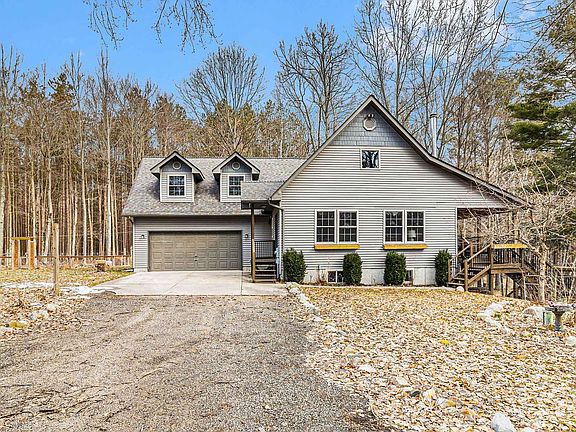 You'll appreciate the main floor laundry, and attached 2-car garage. There is a fully finished walkout lower level, with family room, office/hobby area, and utility room. The detached 30' x 40' Pole-Barn, built in 2015, includes water & electric. The lower level of pole barn has 10' ceilings. The wood framed second story is an open studio/shop space. This nicely wooded 28+ acre parcel is adjacent to Manistee National Forest. You'll experience an Abundance of wildlife, with opportunity for hunting, hiking, cross country skiing, and fishing.