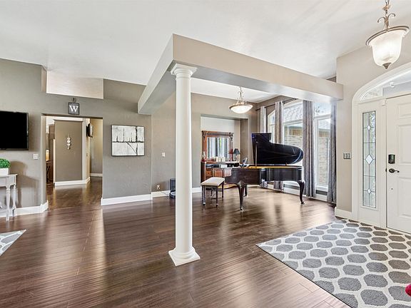 Spectacular- Completely Updated Reflection Ridge Ranch with an outdoor Oasis! The style and quality of this home is very apparent from its curb appeal with its brick and stone appointments. You are welcomed into the home by an entry door with leaded glass sidelights & elliptical transom window. Once inside you are greeted by a formal dining room framed by an upper column plant shelf & round support column, triple windows with elliptical transom, hutch inset and a wood floor. The dining room opens to a large living room with a see-thru gas fireplace with wood and tile face including wood panels & columns to the ceiling, picture windows with transoms and wood floor. The incredible kitchen with white cabinetry includes a huge Island with raised top, Granite countertops, display cabinets with rain glass, under-counter, over cabinet & pendant lighting, stainless appliances, wood floor and pantry. The hearthroom off the kitchen features a gas fireplace with brick face including wood panels above, picture windows with transoms, Atrium door to deck, wood floor and a large breakfast nook. The master bedroom is a true suite retreat with a coffered ceiling, bay window, ceiling fan and an Atrium door to the deck. The luxurious master bath boasts an 8ft double vanity with top mount pounded copper sinks, floating tub framed by an arched opening with wood columns and backdropped by a glass block window, a 4x5½ft walk-in tile shower with two shower heads, seat and shelving, linen cabinet, plant shelf with light plus a huge walk-in closet with a sweater rack. Split on the other side of the house are two great bedrooms with large windows and wood floors. The hall bath boasts a furniture style vanity, tub /shower combo and tile floor. The main floor laundry is a separate room with cabinetry and hanging rod. In the hearthroom is an impressive open rail stairway with wood treads to a second-floor bedroom with bookcases and an ensuite bath with a tile floor and walk-in closet. The walkout basement has a huge family room that includes a gas fireplace with a brick face to the ceiling, viewout windows, Atrium door, can lighting and an incredible stained floor. One-of-a-kind wet bar has massive stone columns and stone walls plus a display inset, concrete countertops with trash hole, recessed frig and a quaint wine room with back bar including stemware & wine racks and chiller plus remote control lighting. The rec room has large viewout picture windows, gas fireplace with brick face to ceiling, ceiling fan and stained floor. Also finished is a super bedroom with a huge walk-in closet and large bath with a 5ft concrete top vanity, linen and tub/shower. Step out of the hearthroom to a show-stopping hideaway of outdoor entertaining space consisting of a 18x21 Trex deck with a vaulted ceiling completely finished with wood car siding, gas fireplace with TV hookups above, a built-in Monument gas grill, frig, built-in gas cooktop, drop down cloth walls, ceiling fan and speakers. If you want a little sun, there is a large patio on the back of the home for more entertainment possibilities. You may need to have a drink on the deck after playing a pickup basketball game on the outdoor court. The yard is kept in pristine condition by the sprinkler system and irrigation well. The 3-car garage is completely drywalled, has 2 openers and a walk-through door to the backyard. Your insurance company will love the 50-year Class-4 roof that was installed in 2018. Don’t miss this fantastic home in the Reflection Ridge Community where you can join the Country Club featuring an Olympic-sized lifeguarded pool, lighted tennis and pickleball courts, clubhouse with a grille and bar, and an 18-hole championship golf course. Options include a Full Membership or a Social Membership that is available for access to all amenities excluding golf, the Club also offers youth swim team and junior golf programs.
