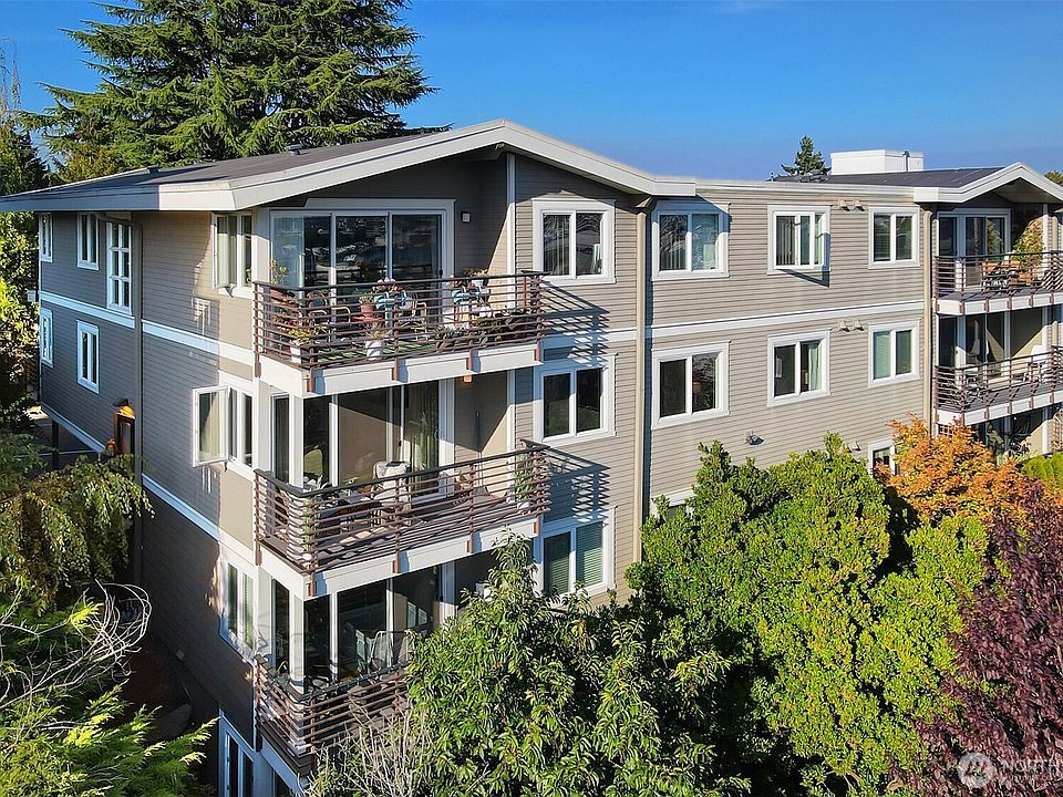 Rare find in the condo world--End unit w/sunsets from the balcony in a great location. Unlike others, this one is surrounded by greenery more than buildings & concrete! Perched on a hill amongst more stand-alone residential homes than mixed use. Oriented to the south you are treated to brilliant sunsets of the canal and the eastern sunrise spotlights Mt Rainier. Come home to the quiet but access the fun of Ballard & the Locks. No hunt for parking you can walk to the Farmer's Market, cafes and music. Fresh paint, updated lighting, custom made Murphy Bed gives you the flex for a home office and guests. Newer European washer and dryer, large closets with motion sensor lights. Strong association with mature community of great neighbors.Pets ok.