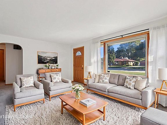 Stunning 2-bed, 1-bath home, fully renovated and move-in ready! New flooring in the kitchen and bathroom, paired with fresh paint for a bright, modern feel. The bathroom has been updated with new tub and surround. Two cozy bedrooms offer ample closet space and hard wood floors. The finished lower level boasts a dry bar, perfect for entertaining guests. Outside, a spacious backyard with a fire pit invites relaxing evenings under the stars, with room for gardening or play. The oversized garage includes an attached room, ideal for a workshop, man cave or storage. Nestled in a quiet neighborhood near schools and shops, this home blends comfort and style.