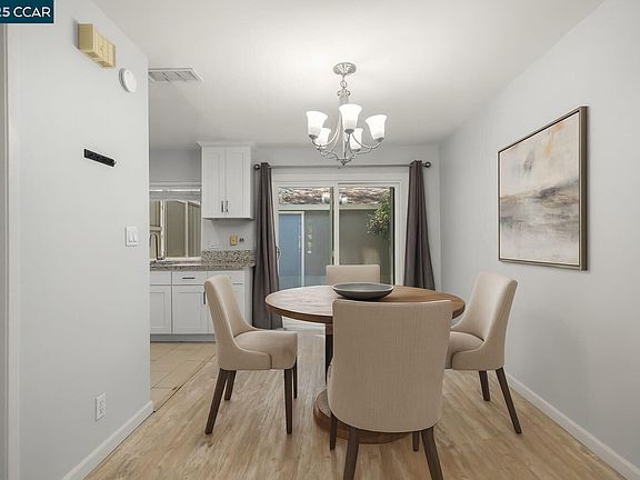 Welcome to this inviting end-unit townhome that's perfectly situated on the Concord/Walnut Creek border, offering the ideal blend of convenience and community living. Located in the sought-after Cherrywood neighborhood, this home provides easy access to top-rated schools, shopping, dining, parks, and BART for a stress-free commute. Inside, discover a spacious and light-filled layout featuring a comfortable living room with a wood-burning fireplace and expansive windows that create a warm, welcoming atmosphere. The remodeled kitchen boasts stainless steel appliances, stone countertops, and abundant storage, opening to a dining area with sliding glass doors that lead to your private enclosed patio to detached garage. Perfect for relaxing or entertaining! Convenient laundry hookups are located in the main-level half bath. Upstairs, you’ll find a bright guest bedroom with a walk-in closet, a full hallway bath, and a serene primary suite with an attached bathroom. Recent updates include a newly replaced garage man door, and new dual paned-windows throughout. Enjoy Cherrywood’s wonderful amenities, including a community pool, tennis courts, and open green space. This home offers comfort, functionality, and an unbeatable location in one exceptional package. Come see!