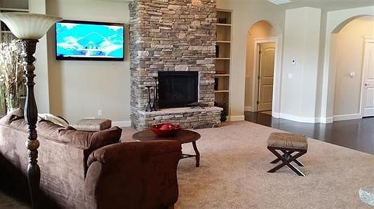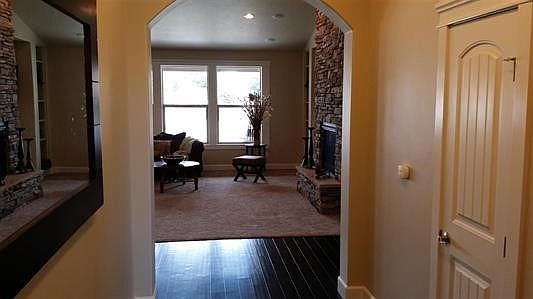 Parade Home 2014. The combination of rich color and stonework amazes you even before you enter and continues to surprise once inside. Dark hardwood floors and cabinets contrast beautifully with the light-colored granite countertops and warm interior colors. The wonderful open floor plan brings the kitchen, living and dining areas together perfectly, creating an entertainers delight. Even in the bathrooms, the fixtures combine perfectly with the hand-crafter design elements used on the custom floors.