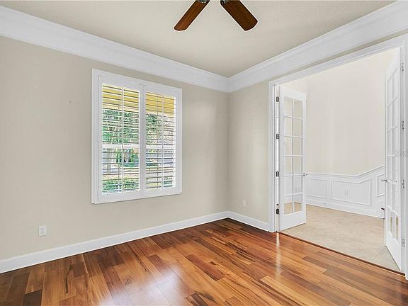 Stunning 4 Bed/3.5 Bath Pool/Spa Home with gorgeous pond views in the desirable gated 'Meadow Ridge' community. This sought after Cambridge model Pulte home sits on a PREMIUM lot, NO rear neighbors and offers fantastic POND w/fountain views! Pampered by the original owners - this home has been meticulously maintained & upgraded and is move in ready for the lucky new home owners! Multiple upgrades include: Wood flooring throughout the home, wrought iron spindle staircase w/wood flooring, sunburst shutters throughout the home, extensive wainscoting and much more! Outstanding curb appeal w/ tile roof, brick pavers, 3 car garage, fresh landscaping & updated exterior paintwork. Impressive high ceilings and dramatic staircase as you enter the home!! This very functional floor plan offers terrific space with a large formal/dining combo leading to a Chef's dream kitchen with a GOURMET kitchen set up all overlooking the gathering room w/sliding doors leading to 2 RELAXING lanai areas overlooking a tranquil pond view!! The expansive 2nd floor offers a huge Owners Suite with BIG double closets and SPACIOUS Master Bathroom w/double vanities, shower & garden bath!. Upstairs also offers a Guest Suite w/private full bath, 2 additional bedrooms & full bath along with a large upstairs laundry room! Meadow Ridge is a hidden gem - close to top ranked schools, restaurants & shopping and major highways! Community features include community pool, clubhouse, play area & park! This is a MUST see home for any new home buyer!!!