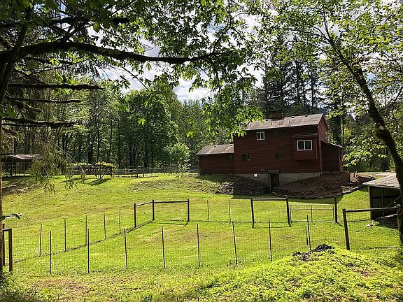 Amazing home on 10 beautiful acres bordered by Tickle Creek! 2817 sqft, 4 bed/3 bath home with lots to offer. Large living room, spacious bedrooms, 400 sqft of finished basement space, off-grid capabilities, three wood stoves, newer carpet, LVP flooring, and paint throughout. Two-story, oversized two-car garage with two wood stoves, 220 power, water, and upstairs studio/flex space. Large 50'x40' outbuilding/barn, covered parking, and multiple fenced livestock corrals. Beautiful setting with forests, pastures, trails, a year-round pond, and views galore!