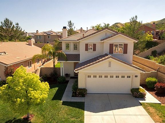 DELIGHTFUL TURNKEY St Clare home sits at the end of a quiet cul-de-sac neighborhood in the Plum Canyon area of Saugus. Light and bright 3 bedroom home has NO MELLO ROOS and low HOA of $82 p/month. Move-in ready, this home features an Open Floor Plan, Vaulted Entry and High Ceilings. As you enter, you'll experience new flooring, fresh paint and carpet throughout, recessed lighting, lighted ceiling fans, and crown and base molding. Enjoy celebrations in the formal dining room or informal breakfast nook off the kitchen. The entire family will love cooking in a large kitchen that boasts a generous pantry, an abundance of cabinet space, new stainless steel appliances and granite countertops. Kitchen island includes dish washer, double sink, garbage disposal and enough room to entertain a buffet or informal meals; yet there is still enough space for table and chairs. Large living room includes fireplace and TV or pet nook. The formal dining room can also be used as an office, game room or guest space. All 3 bedrooms on second level with new paint and carpet. Master bathroom includes newer vanity, tile flooring, private toilet and soaker tub, with a walk-in closet. Small loft area near secondary rooms perfect for studying or home office. Laundry room conveniently located next to upstairs bedrooms. Two-car garage. Only a two minute walk to the community pool and relaxation area. Neighborhood park on Nield features basketball court, tot lot and picnic area.