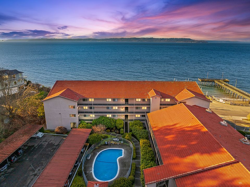 Embrace unparalleled views of Puget Sound, Maury Island and the Olympic Mountains. You will find luxurious finishes, and a sense of serenity just steps from the water's edge. This sunlit retreat boasts an open layout with hardwood floors, a gourmet kitchen with premium fixtures, and a private deck ideal for savoring sunsets. Find relaxation in the luxurious primary suite with upscale amenities, while two additional bedrooms and a stylish guest bath provide inviting spaces for guests. Experience coastal living at its finest in this exceptional condo.