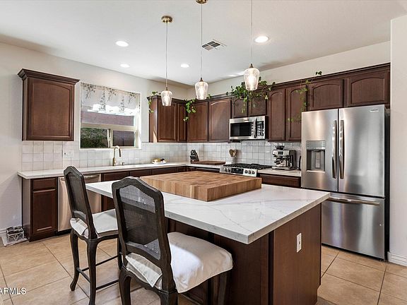 The gourmet kitchen showcases new cabinetry, quartz counters, and stainless-steel appliances, flowing seamlessly into a spacious great room perfect for entertaining. Each of the three bedrooms offers comfort and privacy, while the three beautifully updated bathrooms feature spa-like details and modern fixtures. Step outside to your private backyard oasis, complete with a sparkling pool, covered patio, and low-maintenance landscaping ideal for enjoying Arizona's beautiful weather year-round.