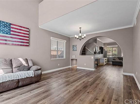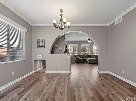 Fresh and innovative styling for those that appreciate quality! Some of the many features include rich looking wood style flooring through the downstairs, neutral paint tones, upgraded baseboards and crown molding! 3 bedrooms, 3 baths plus loft with formal living room and dining room. Secret niche off living room with play climbing wall and toy storage! Family room is open to the kitchen and boasts a cozy fireplace and ceiling fan. Well appointed kitchen featuring a center island with seating, stainless steel appliances, quartz counter tops, subway tile backsplash, ample cabinetry with under cabinet lighting, recessed lights and a slider for yard access. Convenient downstairs powder room. Venture upstairs where you'll find a work station area and a loft overlooking the downstairs living area complete with ceiling fan. Master/main bedroom with vaulted ceiling and sliding barn door to private bath area with dual sinks, large step in shower and separate tub. Nicely sized secondary bedrooms upstairs as well as the third bathroom with tub/shower combo. Upstairs laundry room with storage cabinetry. Enjoy the backyard with attractive flagstone patio and wall hardscaping, a built in BBQ, raised terrace area and canvas shade sails to complete the look! Don't miss this charming home!