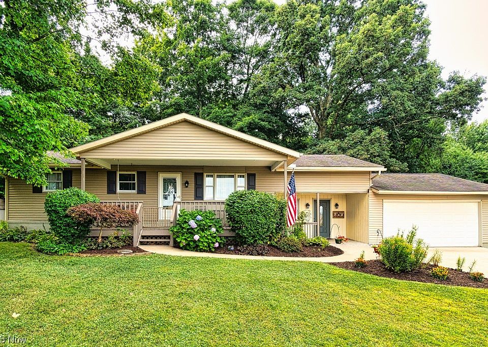Great country living in this wonderful 4 bedroom ranch home on 2 acres! Beautiful hickory cabinets in the eat-in kitchen with an island and lots of counter space. Most of the kitchen appliances are new within the last 5 years. Solid wood doors throughout the home and many closets. Part of the yard is fenced in with a privacy fence to enjoy the backyard and front porch to enjoy the peacefulness in the front. Concrete driveway and stamped concrete as you enter the home. Huge mud room with tons of space between house and attached 2 car garage which includes a 220 outlet for an air compressor etc. Heat pump for heat and A/C new in 2017, Gordan Brothers Water softener with reverse osmosis new in 2015. Anderson windows throughout. Shed to offer even more storage. All electric home, per Ohio Edison the average bill is $167!