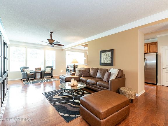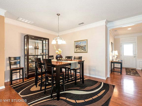 Exceptional Wilmette with premium berm location with no homes behind. Walk thru the front door to experience hardwood flooring through-out! Crown molding trims each room as well. Kitchen has granite counters, backsplash, SS appliances, 42" maple cabinets with knobs, can lights, upgraded lights, Sunroom too! 5 Ceiling fans thru out! (Newer microwave and HWH) New carpet in Master Bdrm. plus bay window too! Tile floors in baths.Extra cabinets in Laundry Rm. Paver brick patio with awning also! Cherry and Pear trees In yard and extra trees on berm also! Southern Exposure off Sunroom! Epoxy floor in garage. Paver bricks on each side of driveway to front door! Edgewater is an Active Adult Community and one resident must be 55+. No more snow shoveling or grass mowing! 24/7 gated community! Creekside Lodge has an indoor and outdoor pool, hot tub, great Fitness Center, & much more!Show with Confidence!