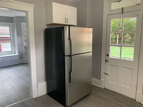 Upstairs, you'll find four bedrooms, all with new flooring, and the master bedroom conveniently connects to the bathroom. Additional features include interior basement access for extra storage, a fenced yard with a concrete patio, and both a designated parking spot and on-street parking. This apartment offers plenty of room and comfort, ideal for those looking for space and modern amenities.