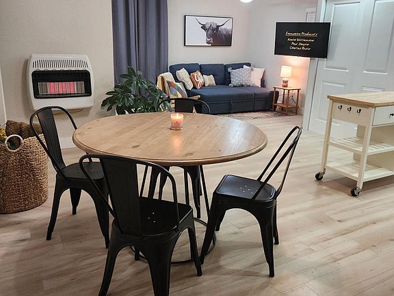 Charming former Saddlery is renovated & ready for a new tenant! No surface was left untouched in this 2-bedroom, 1-bath restoration including (but not limited to) plumbing, electrical, doors & windows, flooring, cabinets, appliances and cosmetics. Open concept has a stylish kitchen with stainless steel appliances, white shaker cabinets and butcher block countertops. Main floors are beautiful vinyl plank, and the bathroom has custom tile and designer vanity. Everything new in 2023 including water heater, electric baseboard heat in bedrooms, gas heater in main living area, evaporative cooler and cosmetics. Bedrooms are amply-sized and fit a queen bed & dresser, possibly a king bed. Ring doorbell and additional Ring camera are installed on exterior door for security. Wood fence provides privacy and enjoyment for your furry best friend and for taking in those Pueblo sunsets. There is no covered parking but there's ample parking space ( even to park RV onsite). Located 2 minutes to the Pueblo Blvd/I25 exit, making for a quick daily commute. This area is experiencing lots of development, especially along Pueblo Blvd corridor and is located close to modern conveniences, downtown Riverwalk, Pueblo Reservoir, and local parks.