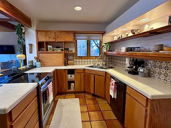 Escape to the serene beauty of Santa Fe with this cozy, fully furnished 2-bedroom, 2-bathroom home. Perfect for a winter retreat this inviting home offers comfort and convenience, featuring a fully equipped kitchen with brand new stove and dishwasher, spacious living areas with plenty of natural light, a private deck wrapping around the home, perfect for enjoying mountain views and sunsets, and an attached garage & wood burning fire place. The house is located in a quiet community with walking paths and peaceful surroundings.