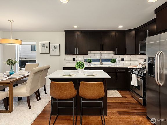A unique offering awaits with this stylish and versatile townhome! Nestled off the main road, it offers a serene setting with both privacy and quiet. The main level features an open-concept layout with a spacious kitchen, bamboo flooring, pantry, and convenient powder room. Upstairs, you’ll find two generous bedrooms, each with vaulted ceilings and ensuite baths. The entry-level bedroom with a ¾ bath and private entrance provides flexible living options—perfect for a home office, guest suite, or MIL space. This home has it all, including an attached 1-car garage and a fully fenced backyard. Enjoy proximity to West Seattle, Alki Beach, neighborhood parks, and a variety of local restaurants, with quick access to downtown Seattle!
