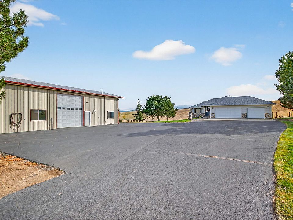 Private, gated, beautiful home on 2.45 acres with an amazing 60 x 30 heated shop and mountain views. This home has impressive features with two primary suites, an ample office, bonus room, daylight/walkout basement, fruit orchard, garden area, security system, and so much more!