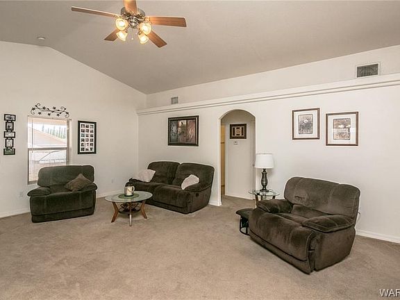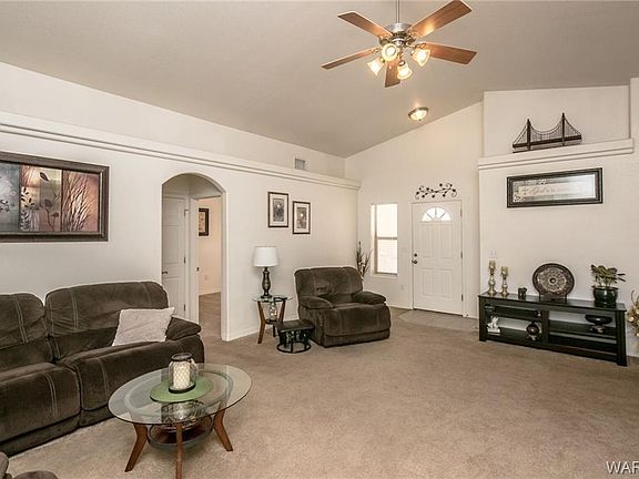 This wonderful 3 bedroom, 2 bath home has an open living room with plenty of natural lighting. The spacious living room has pot shelves and vaulted ceilings with lovely ceiling fans to keep you cool. The open dining area has plenty of room to enjoy dinner with family and friends. Cook a great meal in the wonderful kitchen, which has plenty of lovely oak cabinets for storage and lots of counter space. The kitchen also has a lovely tiled floors and the appliances are included, as well. The indoor laundry room is conveniently located right off the kitchen, the washing machine and gas dryer are included, too. The lovely carpeted master bedroom is spacious with a large walk-in closet and private en-suite master bath with walk-in shower. The other bedrooms are carpeted and have nice ceiling fans. The second bath has a tub/shower combo and plenty of storage. There is a great covered patio located off the living room and leads to the fenced back yard. The backyard is spacious with many possibilities. Sit out on the back patio in the mornings and enjoy a cup of coffee or enjoy the front patio in this nice centrally located Kingman neighborhood.. There is plenty of parking inside the 2 car garage and even more storage. This home has plenty of room for the entire family and even a fenced yard for the fur babies. Don't miss out! ** All measurements to be verified by buyer and agent. **