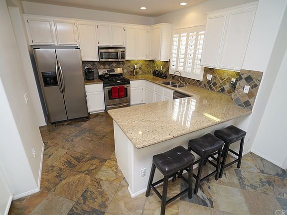 Looking for a great home in a wonderful community? Search no more!! Open the front door of your new home and be amazed by the high ceilings, wonderful plantation shutters and upgraded flooring!! Your Living Room opens to your light and bright Family Room with a cozy fireplace where you can entertain your family and friends for many hours. Your new upgraded Kitchen has beautiful granite counter tops creating a wonderful space to prepare your meals and breakfast bar, upgraded backsplash, stainless steel appliances and tons of cabinets providing great storage! Right off the Kitchen you will find a great Powder Room before you enter your garage. Step through your large slider and enter your backyard that offers a built-in BBQ and room for enjoying hours of fun! Upstairs find a light and bright Master Suite that features plantation shutters and an ensuite with dual sinks, a large walk in closet and upgraded tub and shower. Need a separate workplace outside of the bedrooms? We have a solution! Your new home also boasts two generously sized bedrooms with large closets and ceiling fans. You will find a separate Laundry Room with built in cabinets and an upgraded bathroom. Did we mention that you are steps away from your community pool that features a spa and lounge chairs for relaxing. The Mello Roos on this home is very low. Buyer to verify. So much to offer including the Ring! Make your exclusive appointment to see this home today!