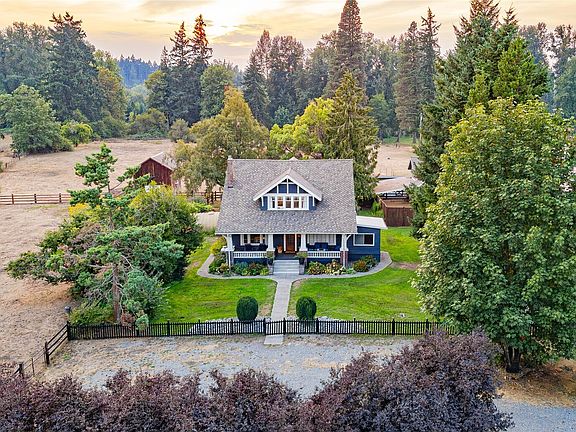 2% towards closing costs & home warranty! Wildflower Farm in Roy, WA. Gorgeous 1920s craftsman & 1200 sf Guest house on 7+ acres, meticulously redone: new roof, 330 amp svc panel, remodeled baths w heated flrs, clawfoot tub. Chefs kitchen w inset cabinets, 6 burner gas range/pot filler, custom hood. Orig woodwork/built-ins, casement windows & loads of charm. 3 bay shop w RV door. Est gardens/landscape, pond, hot tub. 6 stall shed row barn w dutch doors & rubber mat aisle, chicken coop w run, lg x fenced pastures, excellent soils, flat usable land. Room for arena. 2nd parcel included w/sep address & power. Currently an Airbnb, furnishings included. Pls don't drive by/disturb guests. Buyer to verify all.