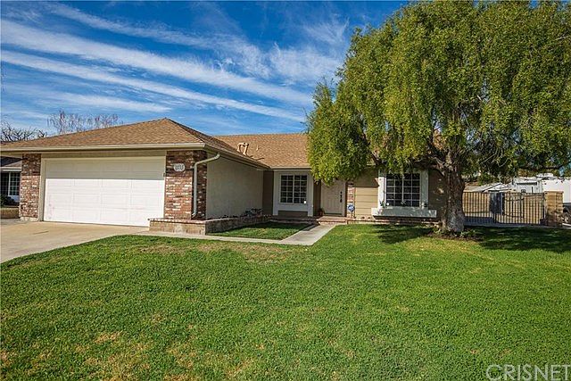 Exceptional SINGLE STORY SAUGUS POOL HOME with dual entry RV ACCESS! Certain opportunities only knock along once in a lifetime! This 3 bedroom, 2 bathroom American Beauty Bouquet is loaded with upgrades and is truly move in ready! The wide open floor plan, vaulted ceilings, recessed lighting, granite countertops, designer fixtures, elegant laminate flooring and ultra thick baseboards are just the beginning! Your light and bright kitchen not only adjoins the cozy family room complete with fireplace, it overlooks the private, sparking pool and spa! Solid covered patio, updated pool equipment ample entertaining space and removable child safety gates are just the beginning! The master suite easily accommodates a California King sized bed with huge mirrored wardrobe and remodeled bathroom! Two additional private bedrooms, a full designer grade second bathroom and indoor laundry room ensure this home will fulfill all of your needs! Copper plumbing, newer HVAC, dual paned windows, upgraded doors and knobs! Direct access 2 car garage with built in cabinets, ample street parking and sides a culdesac street. The short walk to award winning schools, fabulous restaurants, shops and hiking trails provide SCV living at it's best!
