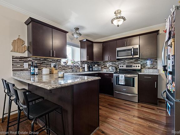 Welcome to this beautiful move in ready 4 bedroom, 3.5 bath split level colonial. First floor primary bedroom with walk in closet and updated on-suite bathroom. Gorgeous hard wood floors throughout the house. The office/den has tons of natural light and French doors for privacy. Open concept great room with wood burning fireplace that flows into the large dining area and modern kitchen. The kitchen has beautiful granite counter tops, tile backsplash and stainless-steel appliances. Convenient 1st floor laundry with front load washer and dryer! On the 2nd floor you will find 3 large bedrooms, a huge walk-in closet or flex room and updated bathroom! Sky bridge over looks the great room. The basement is great for entertaining! It is fully finished with spare bedroom, living area and custom bar! Lots of closets for extra storage. Full bathroom in basement with jetted tub! Attached 3 car garage perfect for storing all the outdoor equipment. Back patio was added in 2024 and is perfect for relaxing. New Roof 2017, Wallside windows 2017, Hot tub is Negotiable! 1 year home warranty