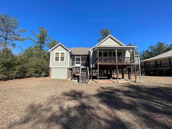 Beautiful 3BR/2BA lakehouse located on the banks of Patsaliga River. Just minutes to navigate to Pt A one of the best kept fishing secrets in the state. Enjoy overlooking the river while sitting on the Dog Trot Porch. Pine flooring and ceilings throughout. Fresh paint. Has downstairs storage room and dock to tie your boat up. Even has a lift to help get those groceries upstairs to the main house. Level lot. Mini splits to save on the power bill and much more.