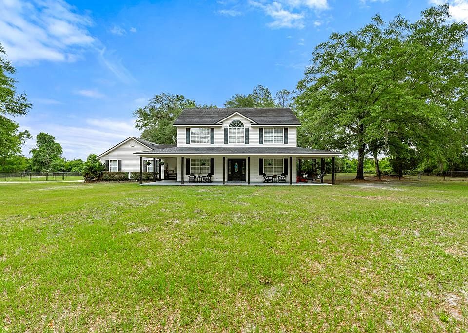 NEW ROOF TO BE INSTALLED BEFORE CLOSING. Welcome to this beautifully maintained 4 bed, 2.5 bath two story home, where country living meets modern charm. The fourth bedroom could be used as office space downstairs. Enjoy your morning coffee or unwind in the evening on the charming wraparound porch. Inside, laminate floors with a hardwood look flow throughout, adding warmth and style to to every room. Situated on 2.85 acres, this home offers peace and tranquility your family deserves, with plenty of space to relax, play and grow. Garage is enclosed could be easily changed back to a garage or make extra living space.