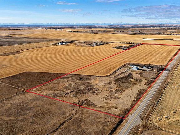 Welcome home! This 39 +/- acre parcel is minutes from Airdrie on pavement - such easy commuting distance and waiting for its new owner! This quaint home offers three bedrooms two full bathrooms and an unfinished basement offering lots of opportunity for a growing family. Flooring and appliances have been replaced in recent years. Outside you will find almost 40 acres of very useable land - over half of which is in hay and the balance pasture. Perfect for a hobby farm. The barn 40x36 with concrete tack area. Opportunities to get this much land so close to the city do not come up very often, there is fantastic value here!