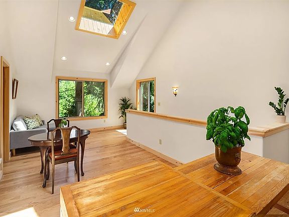 The one you have been waiting for- 100 ft of prime lake front on coveted Crab Apple Lake!! The 2 bedroom 1 bath unit is freshly painted and updated with a modern kitchen. Featuring soaring ceilings with skylights that provide tons of natural light and large windows with lake view. Sitting above a huge 2 garage (not accessible to tenant). The property has a private dock that is shared with a smaller 1952 cabin (unit A). Relax on this shared 1/2 acre lot w/ private shared dock, take your canoe or SUP out, fish for stocked trout & bass and soak in the quiet (no power boats allowed, electric motors only). Close to all Smokey Point amenities.