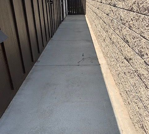 490 sq feet ( feels bigger ) of inside space and 500 sq feet of paved/gated private space outside.