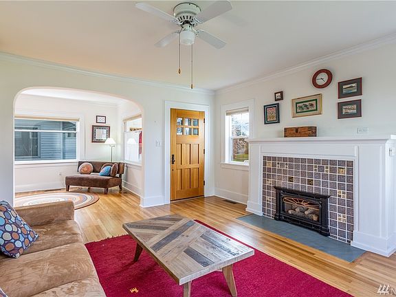 Thoroughly upgraded Broadway St. Bungalow is a masterful blend of original charm & modern touches. Warm wood floors, a cozy fireplace, abundant natural light & an enchanted backyard deck/landscape combine w/a modern Master Suite featuring a 3/4 bath, dual closets, French doors, spacious dining or flex space w/ vaulted ceilings + upgraded wiring, windows, high-eff. heating & 3 yr. old roof. Play in the sunny park right out the front door. Abundant storage throughout + basement + garage!