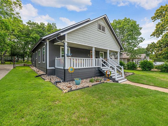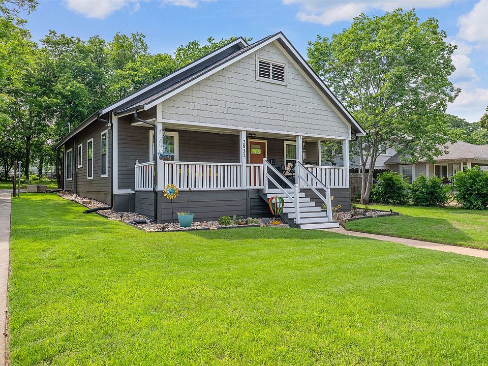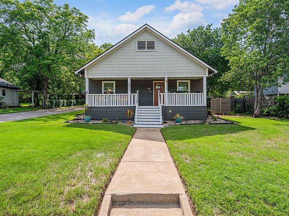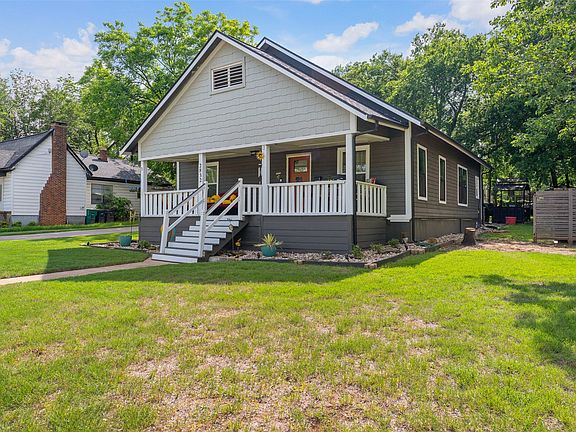 Welcome to this beautifully maintained home that perfectly blends classic charm with tasteful modern updates. From the moment you arrive, the curb appeal and craftsmanship of this home shine through. The inviting lounge-style front porch is the perfect spot to sip your morning coffee and wave to neighbors in this friendly, established community. Step inside to discover original hardwood floors, high ceilings, and thoughtfully curated finishes that honor the home's history while embracing today's lifestyle. The cozy yet spacious living area features a custom fireplace and sleek updates, creating a warm, stylish ambiance.