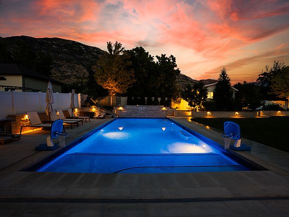Quality custom home, luxurious home with wrap around porch, stunning yard and lime stone pool with radiant heat decking around pool and to the hot tub, highly sought after neighborhood. Stunning kitchen, high end Wolf appliances, butler pantry with pebble ice maker and walk-in pantry, large mudroom with sink and extra refrigerator, brand new furnace, new a/c, new manifold plumbing, new water heater, 12' ceilings, 9' doors, Brazilian hardwood flooring. transom windows and wainscoting thru-out, large master suite with attached nursery, laundry room UP with all the beds, guest bedroom with a fireplace, great room with an indoor/outdoor fireplace. built-ins galore, repainted exterior Hardy Board, shaker (2019) with brick and stone. Concrete/flat work in drive way was replaced about 5 years ago. High end luxury pool (1000 SF) & limestone walls, decking made with concrete, radiant heat, and topped with lime stone, Luxor Lighting system and pool equipment (in basement of pool house) is away from weather. Back yard is excellent for entertaining and making memories. Utopia fiber in entire home; nearly every room has direct connection to fiber. Echo B smart thermostats (2) are of course included.