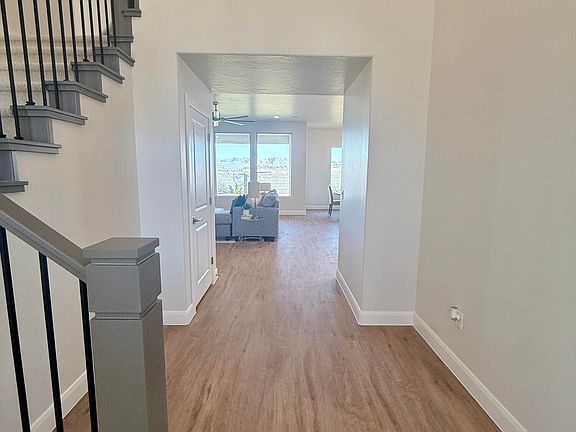 This beautiful home is situated on the east side of town and boasts features such as LVP (luxury vinyl plank) flooring, quartz countertops, and under-mount sinks with soft-close drawers and cabinets. It includes a smart home kit, a Wi-Fi router, a programmable thermostat, and a keyless front door lock.