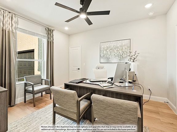 NEW! NEVER LIVED IN. Ready December 2025! Bloomfield Homes introduces the Seaberry II, a striking two-story design that pairs spacious living with modern elegance. From the curb, the brick-and-stone exterior with arched entry, brick front porch, and carefully landscaped yard with stone edging, stained fencing, sprinkler system, and gutters creates a welcoming first impression. Step inside the 8’ 5-lite front door into a bright foyer that opens to a formal Dining Room on one side and a private Study with glass doors on the other. Moving further in, the home unfolds into a grand Family Room with soaring vaulted ceilings and anchored by a cozy stone-to-ceiling fireplace with a gas starter and cedar mantel. Overlooking the family space is the Deluxe Kitchen, equipped with white shaker cabinets, stainless steel appliances, Quartz countertops, an island with cabinet skirting, a farmhouse sink, a pot filler, and pendant lighting—a dream setup for both everyday meals and entertaining. The open-concept flow continues into the sunlit breakfast nook with views of the covered patio and backyard, while a tucked-away Primary Suite provides a private retreat with a spa-inspired bath featuring Quartz-topped vanities, upgraded tile, soaking tub, and walk-in shower. Upstairs, the secondary bedrooms each have access to beautifully upgraded baths, with Quartz countertops and tile flooring throughout. A spacious Game Room connects seamlessly to the Media Room, creating the perfect setting for fun and relaxation. Throughout the home, you’ll find laminate wood flooring in high-traffic areas, upgraded carpet in bedrooms and stairs, blinds on all windows, upgraded lighting, including uplights at the front, and multiple added outlets for convenience. Everyday functionality shines with thoughtful details like a butler’s pantry, storage under the stairs, and a dedicated service drop at the back patio. Call or visit Bloomfield at Villages of Hurricane Creek in Anna to learn more!