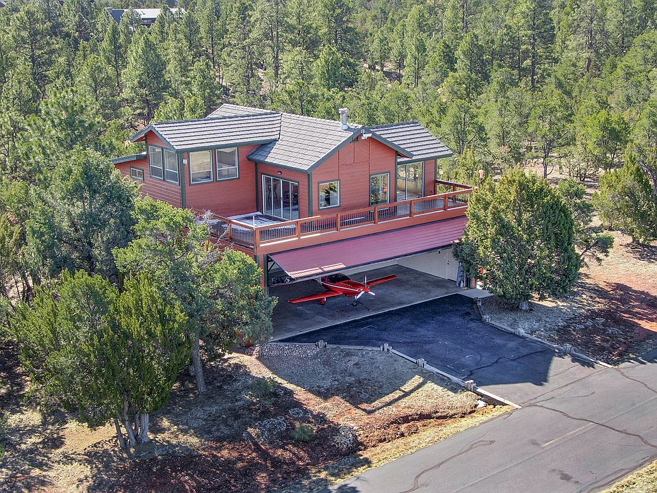 Seeing is believing, a birds-eye view of wild life and aircraft operating from the prestigious Mogollon Airpark. Watch the action from your deck or while tinkering in your hangar. This recently remodeled 2,280 sq-ft hangar home is located on a 1-acre cul-de-sac lot on the northeast parallel taxiway with plenty of space to expand.New flooring and interior paint throughout. Kitchen features a breakfast bar, tile counter tops, gas oven/range, dishwasher & refrigerator. Adjoining living room w/fireplace. Spacious formal dining room is large enough for entertaining a crowd. Ascend a short staircase to an office/den with commanding views! Abundant double paned windows provide awesome views throughout this home. Master suite includes a seating area with an en suite shower, tiled double vanity and walk-in closet. Guests enjoy a private en suite with access to a covered deck. HI-FOLD 42' bi-fold hangar door provide 12' clearance to this 45'W x 30'D T-hangar. Temperature controlled forced air heat allows you to work on projects all year round. Water softener and tank less gas water heater provide instantaneous hot water. When power is unavailable an 11 KVA "All House Generator" takes over. At 6,658 MSL this is the perfect fly-in escape from summer heat or enjoy all 4 seasons. Join us at this one of a kind active aviation community. We look forward to meeting you at the Mogollon Air Park, Arizona's finest and friendliest residential aviation destinations.