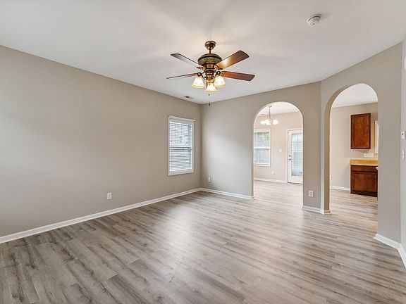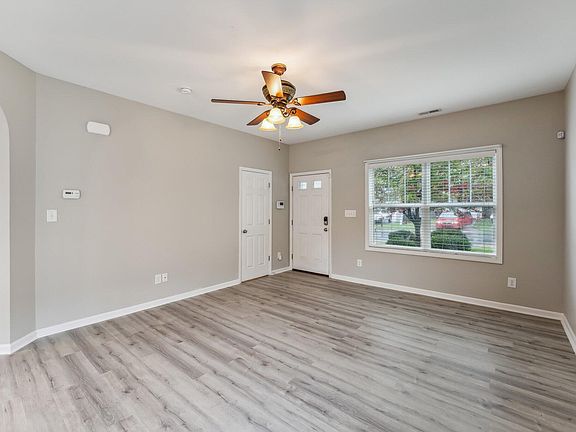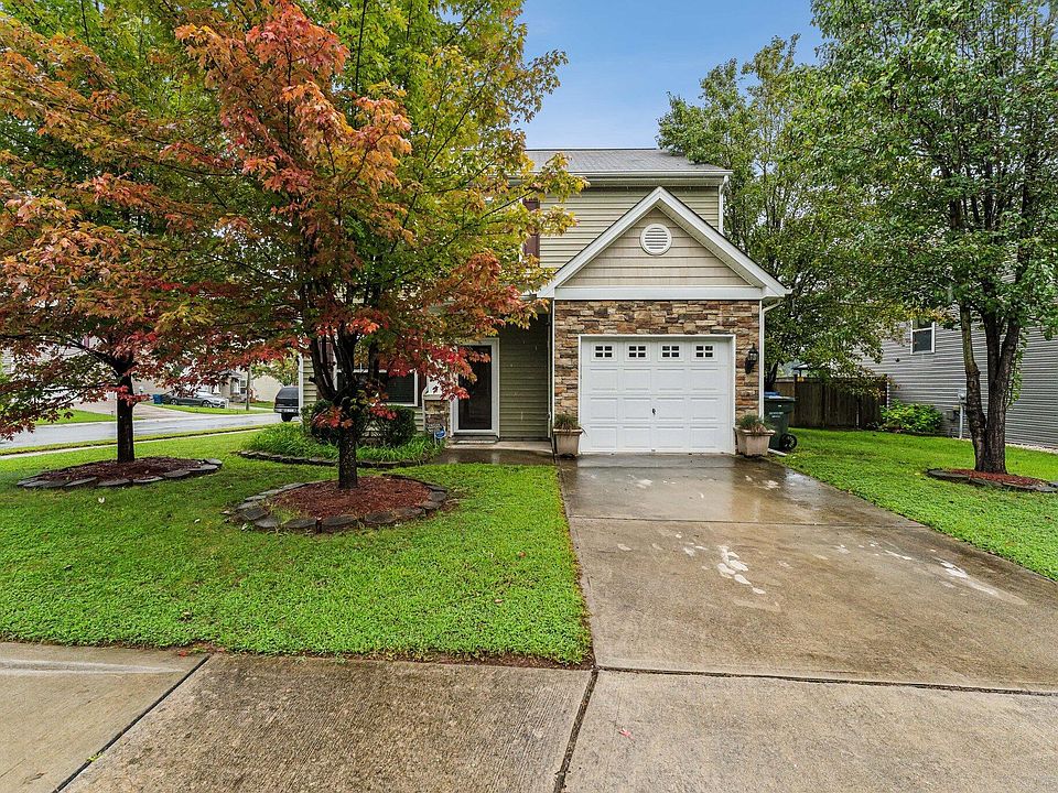 Welcome home to this charming 3-bedroom, 2.5-bath home in a desirable Panther Creek with it's inviting curb appeal, featuring stone accents and mature trees. Inside, the open-concept layout features a seamless flow of freshly painted neutral tones and stunning new flooring. The dining area, living room, and kitchen are designed for comfortable everyday living and are perfect for entertaining. The kitchen features ample cabinet space and an island for easy meal preparation. Upstairs, the primary bedroom includes a large walk-in closet and an en-suite bathroom with a dual-sink vanity, soaking tub, and separate shower. Two additional bedrooms offer plenty of space or can aid as a home office. Outside, the spacious fenced backyard is ideal for outdoor activities, whether barbecuing or gardening. Conveniently located near parks, shopping, and major highways, this home provides easy access to Durham, Raleigh, and RTP. Move-in ready, this home is a great opportunity to settle into a thriving community.