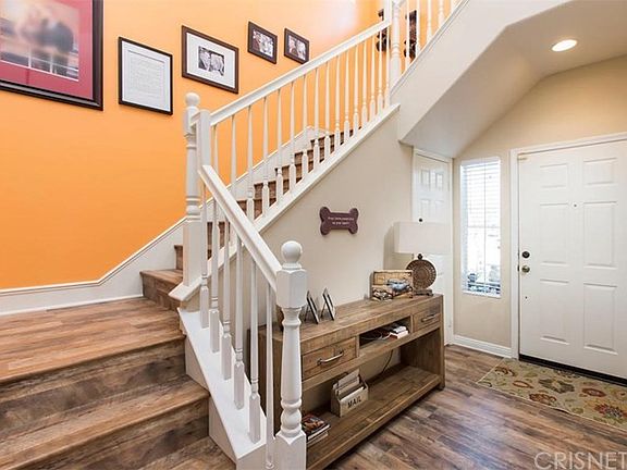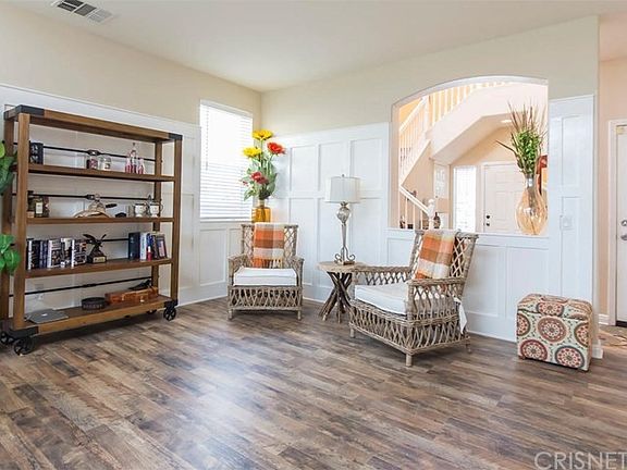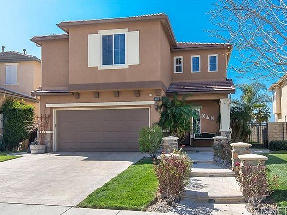 JUST LISTED, contact Marc at 661-297-1925 to see this ASAP! Attention all Saugus and Santa Clarita Buyers that are looking for a Move-In-Ready Home. This absolutely stunning property is located on a cul-de-sac in the highly desirable St. Clare Community. Inside, you have 4 bedrooms, 2.75 baths with a bedroom downstairs & bathroom. Over 2500+ of luxury living that include upgraded flooring downstairs, custom wood work in formal living room and a brick facade in the family room entertainment wall with a gas log fireplace. The gourmet kitchen is accented by newer stainless steel appliances, granite counter tops and a tiled backsplash. Upstairs are 3 large bedrooms with a good sized loft perfect for the kids, the master has a distressed wood wall, coffered ceiling and new carpet with the master bathroom having new flooring too. Outside is what you ve been looking for from the beautiful curb appeal with a wonderful entrance to the backyard that offers plenty of grass for pets or children, custom wood arbor with TV, a oversized built-in BBQ with a sink and a cozy brick fire pit for those cool summer nights to hang out with friends. The direct access garage will hold two cars and has storage cabinets & racks. No Mello Roos and low HOA plus the location is an added bonus because it s walking distance to the community park
