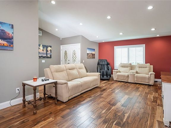 If you're looking for the definition of "TURNKEY", here it is! This popular Mountain View pool home has been updated and upgraded to the 9's by the current owner and is ready for you! Awesome 3 bed 2 bath floor plan can be arranged in a variety of ways to meet your needs. Upgrades include beautiful double entry doors, rich Acacia wood floors, stone veneer inside and out, complete kitchen remodel with gorgeous stone counters, custom cabinets with dovetail drawers and soft close glides, stainless appliances, and cast iron sink! Master bath straight out of a design magazine with tons of high end marble and a shower that will put some day spas to shame! Backyard featuring pool, spa, patio cover, and an Eastern view out the back of the yard! Plenty of space on the side of home to store your toys (storage shed included). Situated towards the end of a short cul-de-sac with no homes across the street, this home really does have it all! HVAC, water heater, pool plaster, recessed lighting, all have been updated/upgraded and are ready for you. NO HOA or MELLO ROOS! Book your moving company today!