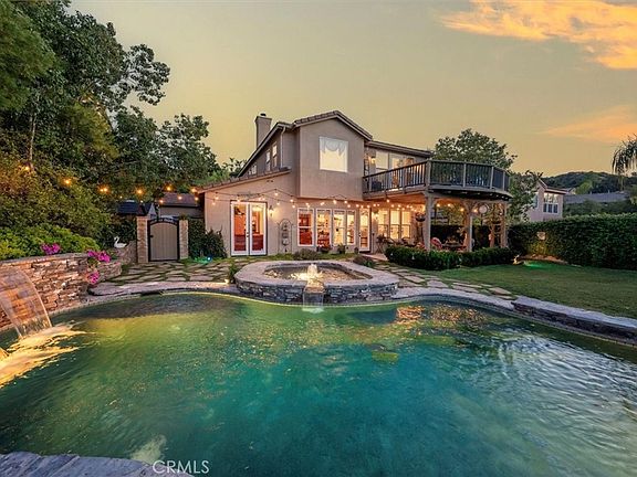 EXCEPTIONAL pool home with fully paid solar and gorgeous views. Lush landscape welcomes you into this unique home with endless options. Upon entry a large theater room (if you choose) or formal living room invites you in to the left and a large office (or anything you want it to be) is on your right. Continuing down the long custom tile and wood entry hall you have a formal dining room currently used as flex space to your left and ends in the newly remodeled kitchen with Kitchen Aid stainless steel appliances, high end countertops, walls of white cabinetry and a large island with significant prep space as well as seating for 5 people. To the right of the long entry hallway you will find a 3/4 bathroom, a laundry room and another hallway to the three car tandem garage. Again you'll end in the stunning custom kitchen with a supersize family room to your right. The large room is flanked in windows allowing tons of natural light into the space. With room for a full size dining set, a fireplace area, ample seating and entertainment center it still feels large with so many options. As enticing as all of this immaculate interior space is I don't think you'll be able to take your eyes off the oasis waiting out back that you can see from every rear window of this home. Step outside to the ultimate staycation opportunity every single day. A covered patio for dining just off the kitchen. Large pool with waterfall display, an inground spa, spacious grassy area, custom lighting for the perfect ambiance & mature landscape combine for a resort like feeling with views for miles! Upstairs boasts 4 bedrooms, a large loft, balconies off the front and back of the home & almost brand new carpet. This home offers a rare serenity you have to experience for yourself. Close to schools, shopping & freeway access yet nestled in the hills of a well established neighborhood. Rarely do you find a home this well cared for and so thoughtfully designed. The owners created a space where amazing memories were made for their families and friends and they hope it can continue to be a place where more special moments are had. You don't want to miss it.
