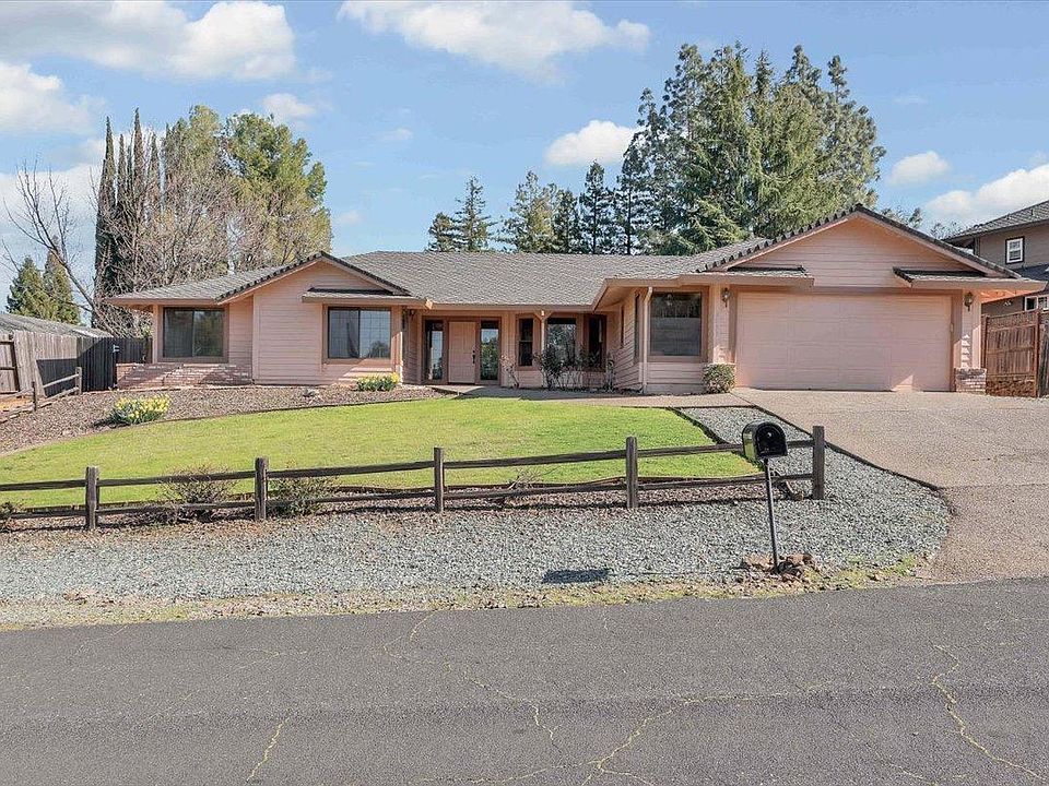 Beautiful single-story 3 bedroom 2.5 bath Cameron Park home on .34 acre lot with an endless backyard is tucked away on a charming court. The bright and airy floor plan features a spacious living area with lots of windows and an abundance of natural light. This creatively designed custom home has separate living, dining, and family rooms, along with a kitchen nook, making it both comfortable and functional. The primary bedroom features a new shower, and sliding glass doors leading out to the tranquil backyard. French doors off the family room open to a large sunny room with endless possibilities ..home office, playroom let your imagination dream! The private backyard creates a perfect blend of interior and exterior living with mature landscaping, patio, flowers and plenty of room for a pool. Freshly painted exterior makes your new home shine. This home is located in the highly esteemed Rescue School District. Washer, dryer, and refrigerator included.